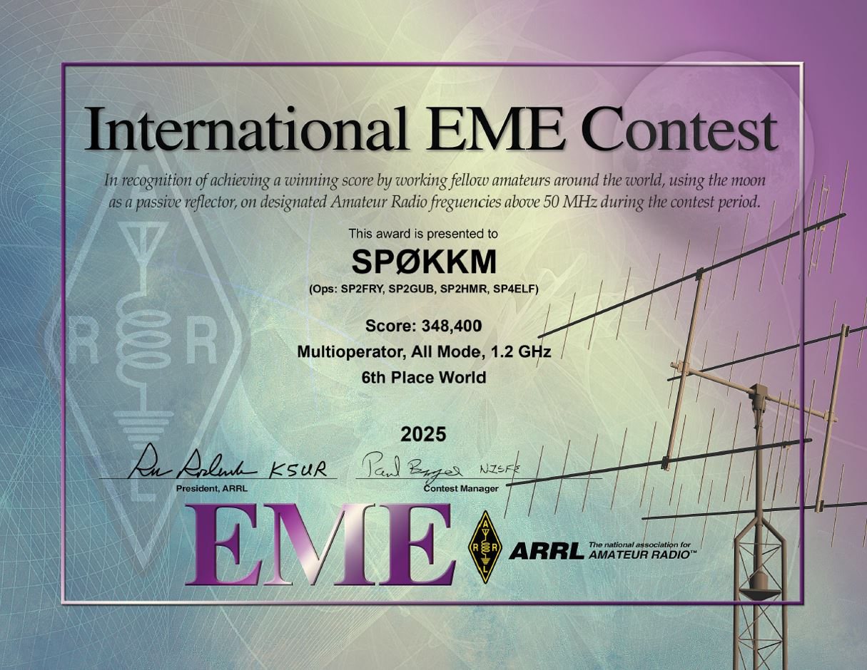 SP0KKM – 6. miejsce w ARRL EME Contest.